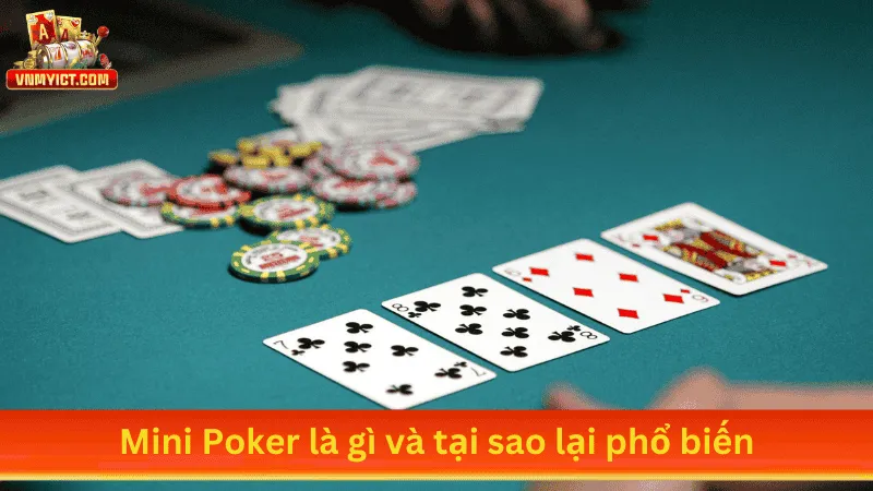 Mini Poker hay còn gọi là Poker thu nhỏ, là phiên bản rút gọn của Poker truyền thống. Trò chơi này được thiết kế với mục tiêu mang lại sự nhanh chóng và dễ tiếp cận hơn, đồng thời vẫn giữ được sự hấp dẫn và kịch tính của Poker gốc. Sự phổ biến của Mini Poker đến từ việc nó phù hợp với nhiều đối tượng người chơi, từ những ai yêu thích chiến thuật đến những người tìm kiếm niềm vui giải trí đơn giản.