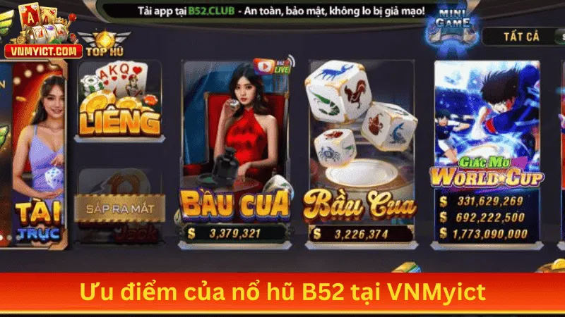 Nổ hũ B52 tại VNMyict mang lại nhiều ưu điểm vượt trội so với các trò chơi khác: