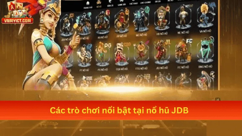 Nổ hũ JDB mang đến hàng trăm trò chơi với nhiều chủ đề phong phú, giúp người chơi không bao giờ cảm thấy nhàm chán. Dưới đây là một số tựa game “ăn khách” mà bạn không nên bỏ lỡ: